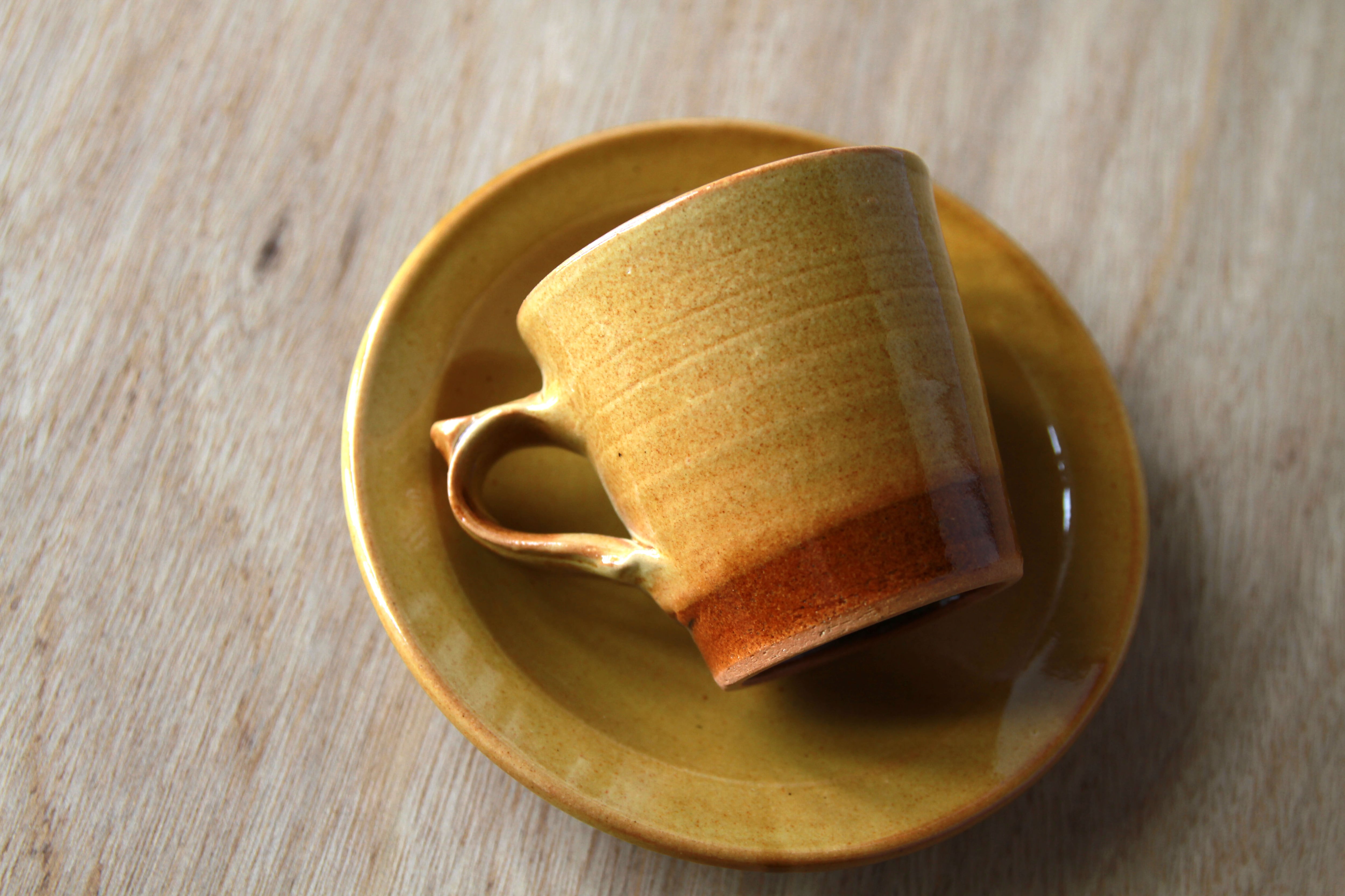 コーヒーカップ&ソーサー 黄釉【湯町窯_R8】No.21