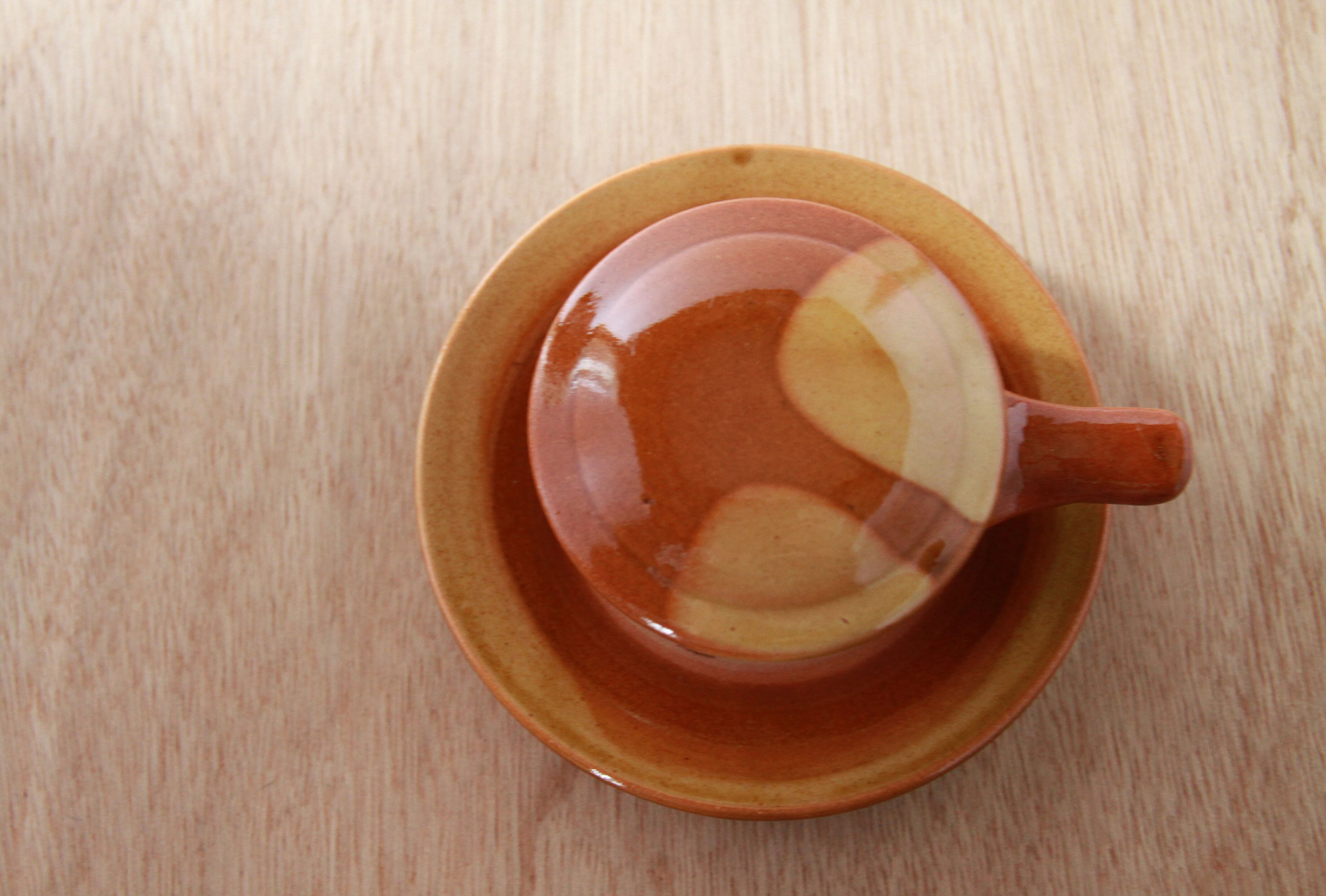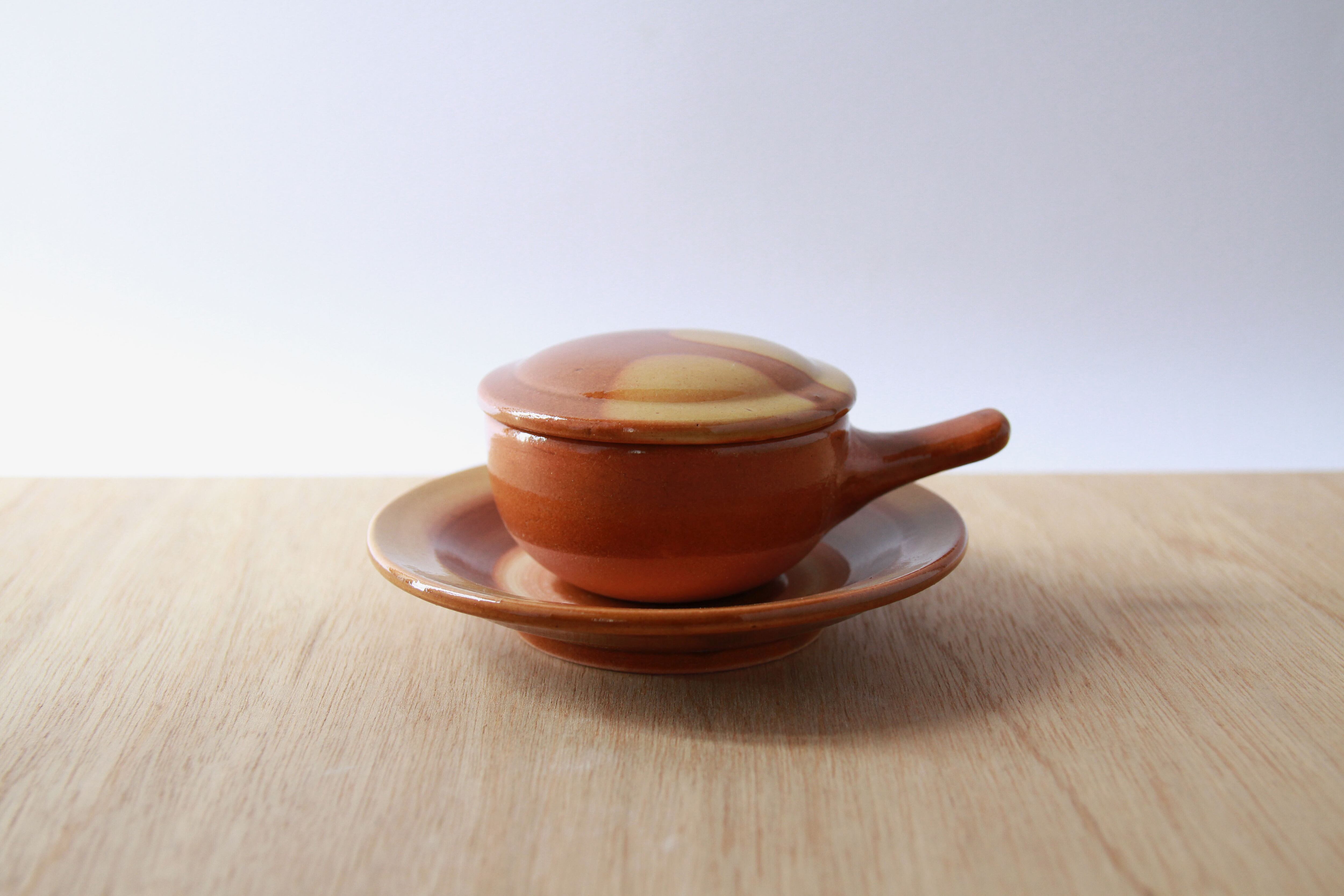 サイズ:皿直径 約13.5cm 碗直径 約6cm、蓋直径 約8cm (取手込約12cm) / 高さ 約6cm
