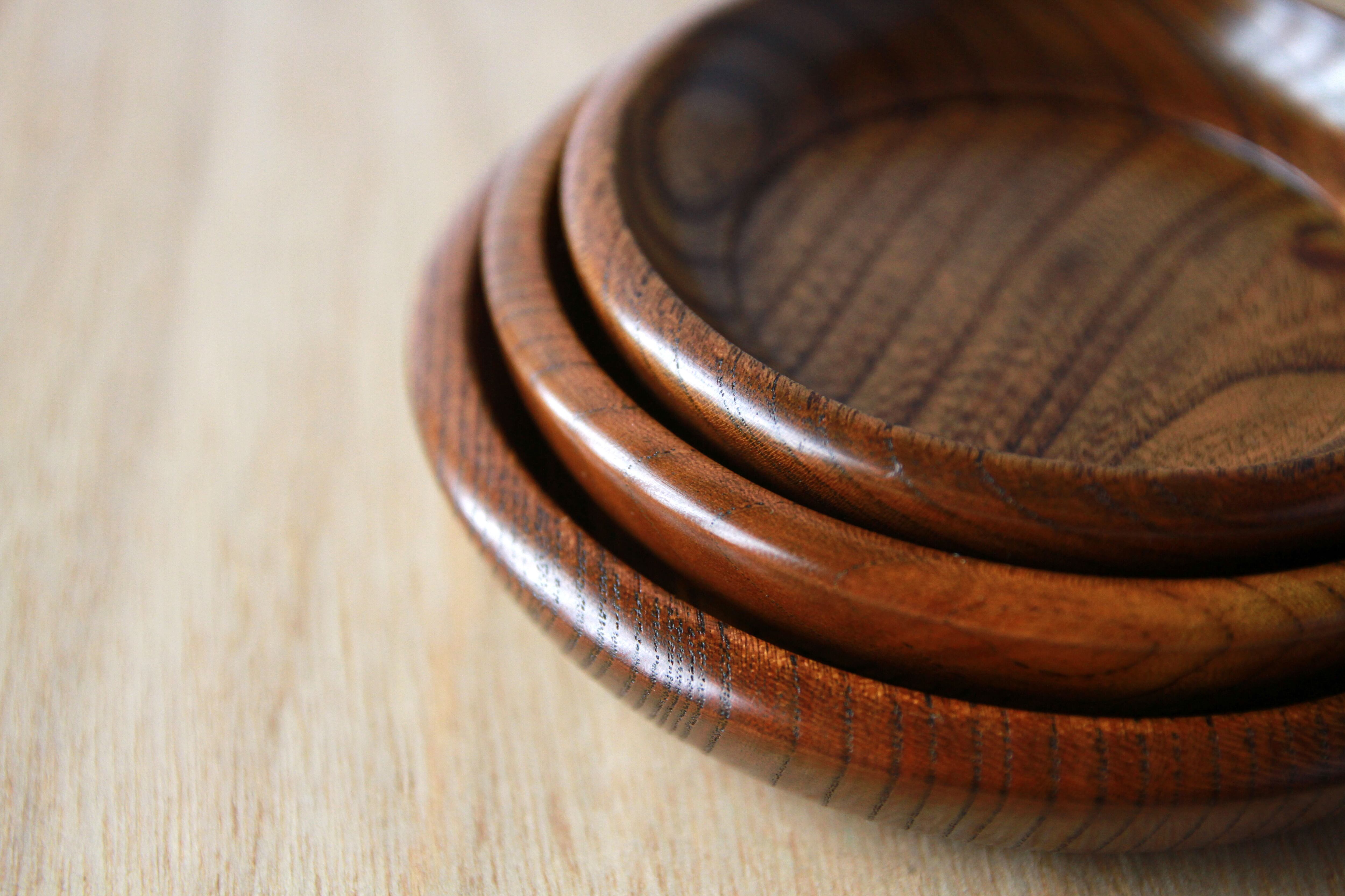 現在は森山登さんが、島根県内で採れる良質な欅(ケヤキ)を轆轤で成形し茶托やお盆を作っておられます。